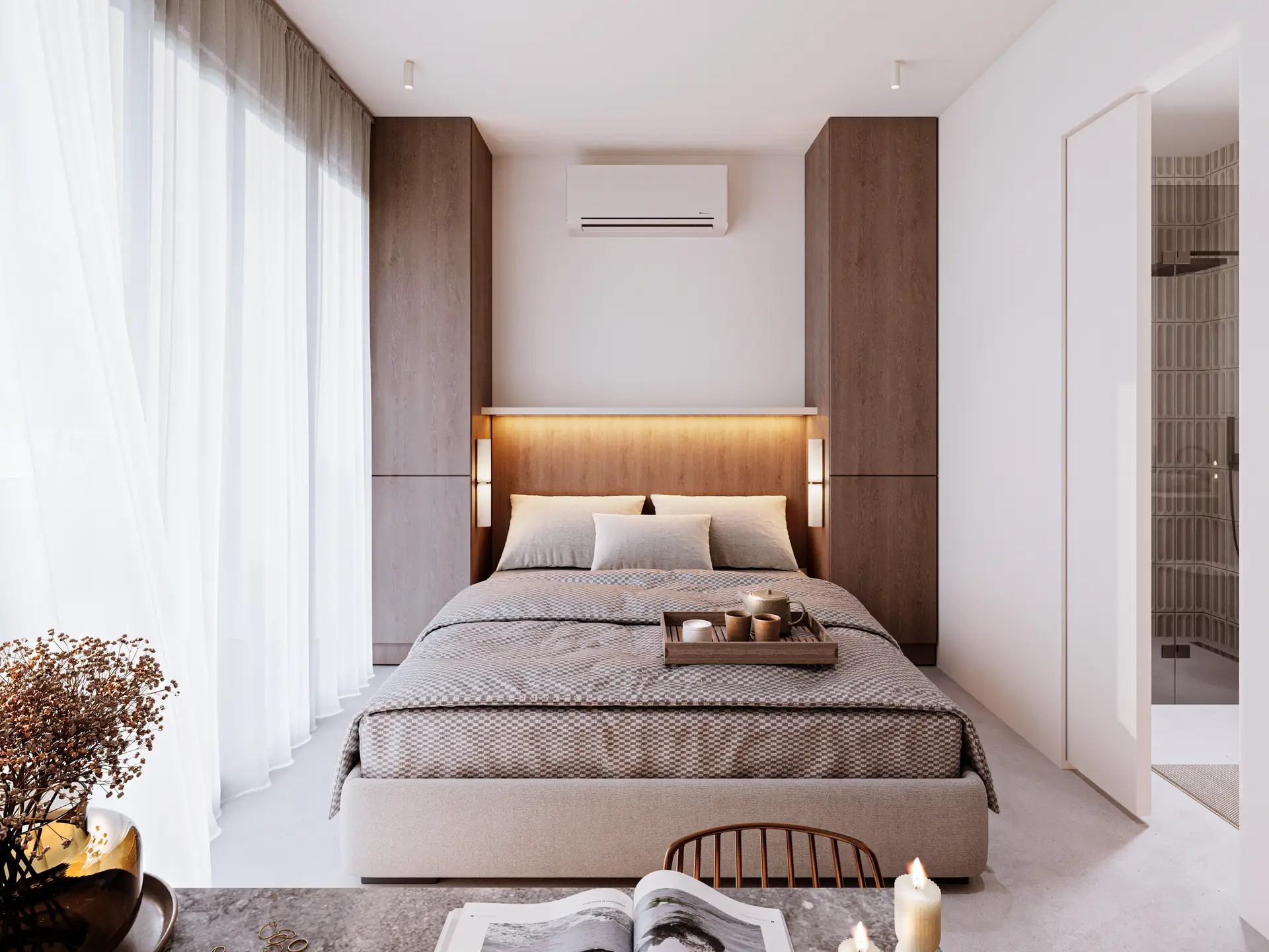 Budynki 1-4: 52 apartamenty o powierzchni 34 m², w tym 13 z prywatnymi ogródkami i 13 z bezpośrednim dostępem do prywatnych basenów.